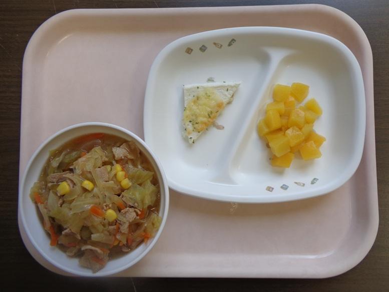 10/7(火)味噌ラーメン、はんぺんチーズ焼き、黄桃缶