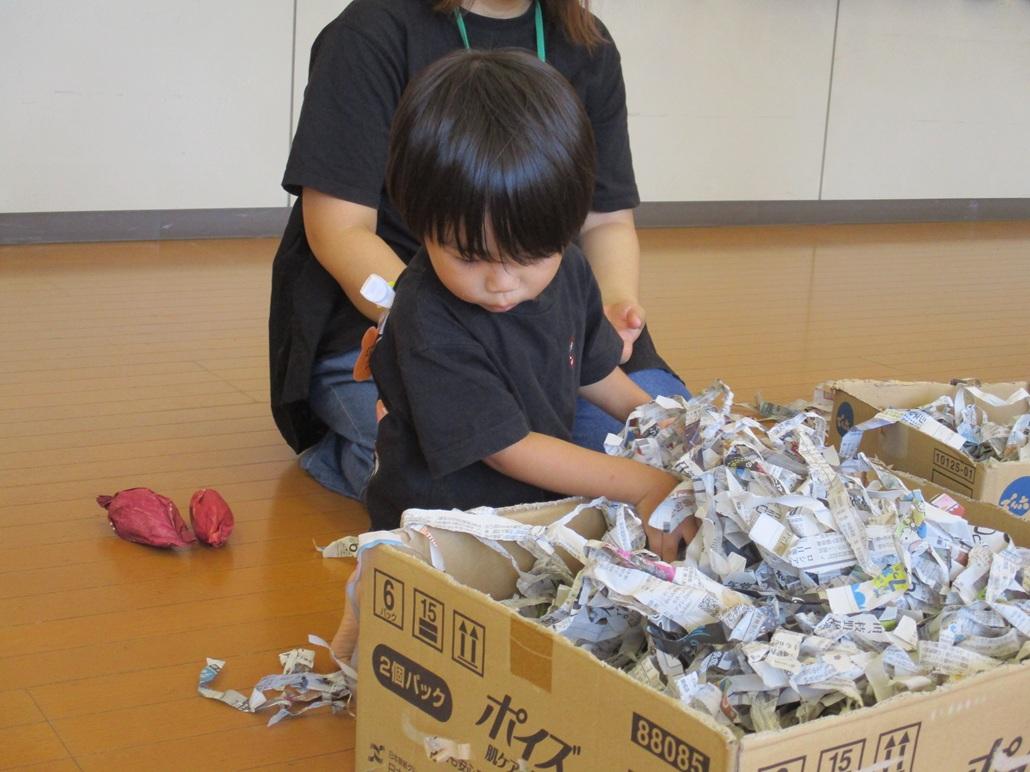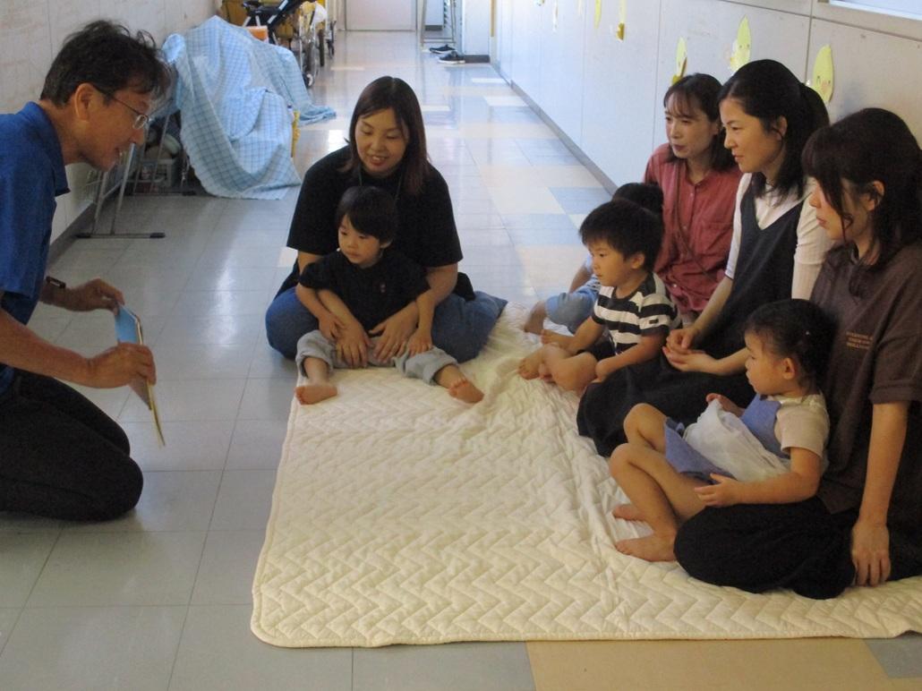 室内あそびを楽しんだ後は、『さつまのおいも』の絵本を聞いて