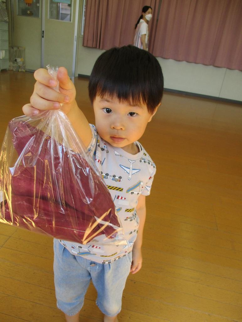 おいもを見つけると、ニコニコ笑顔で嬉しそうに見つけたおいもを手にしていました。