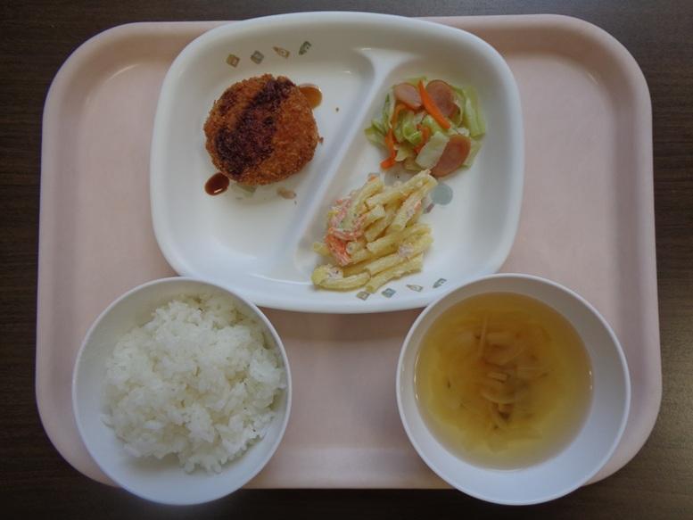 9/24(水)ごはん、すまし汁、メンチカツ、野菜ソテー、マカロニサラダ