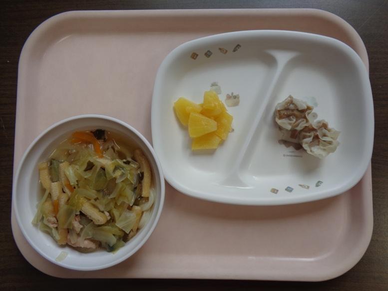 9/25(木)鶏と野菜のちゃんこ風うどん、焼売、パイン缶