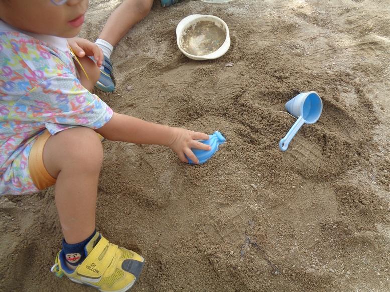 お昼からの砂場では年少さんが型抜き遊びをしていました。1学期よりも上手になっていました。