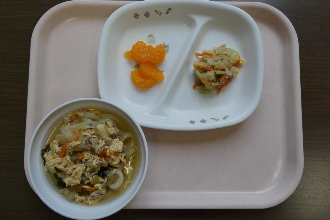 10/15(水)卵とじうどん、ツナとキャベツの和風サラダ、みかん缶