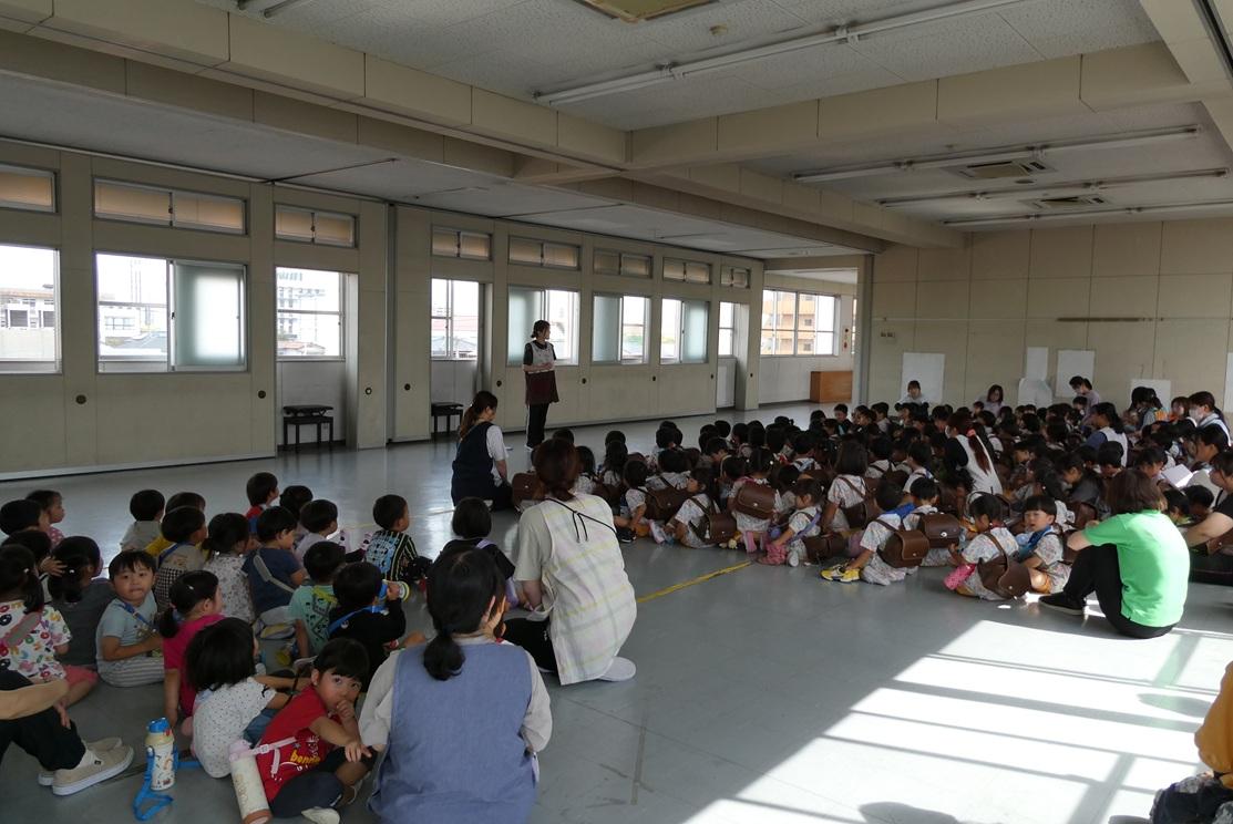 3階には0歳児から5歳児まで全園児が揃いました。人員確認後講評をしましたが、そのときもお話の聞き方が上手で感心しました。集団の力の伸びを感じました。話を聞く目がとても真剣でした。