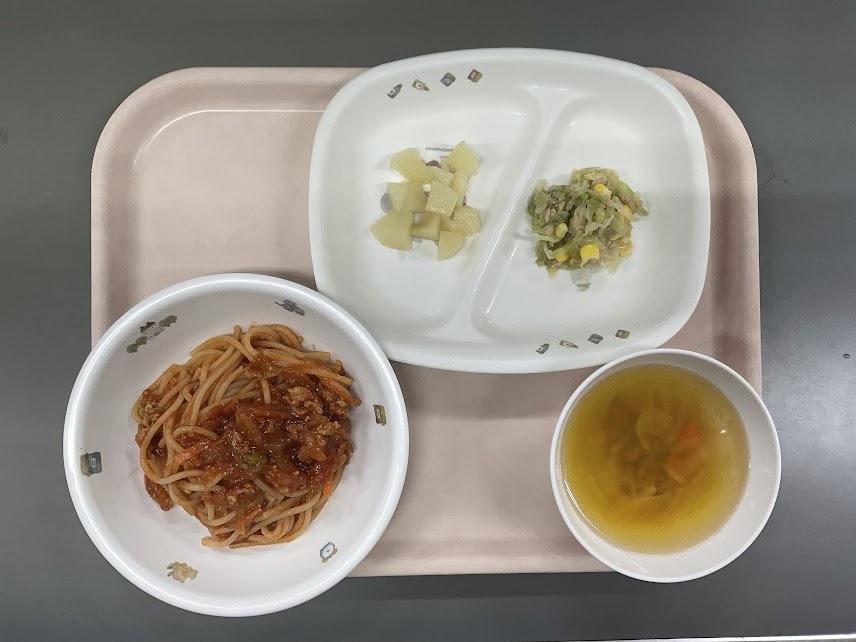 10/22(水)豚肉と野菜のトマトスパゲッティ、ツナとキャベツのサラダ