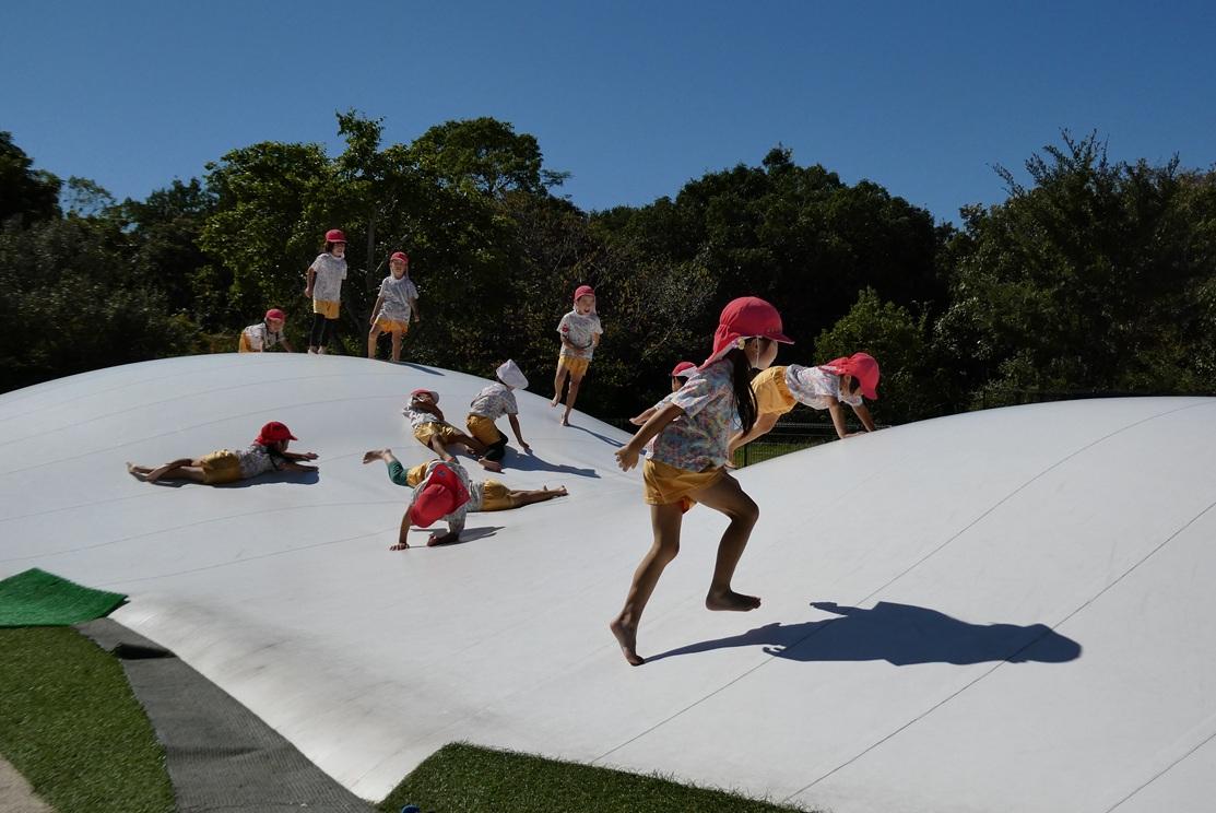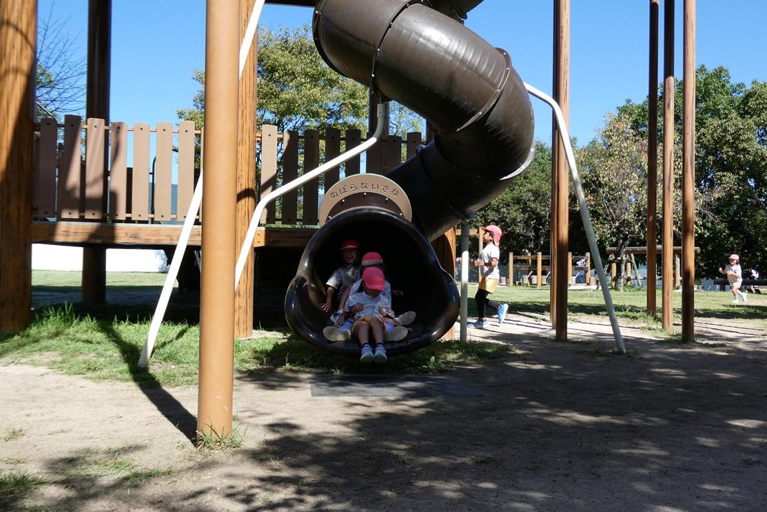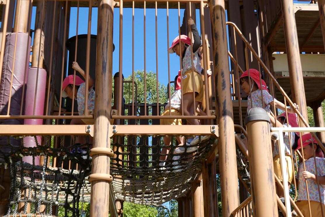 広い公園の大きな遊具で、みんなで遊びました。おいしいお弁当を食べた後も、時間いっぱい遊びました。「また来たいな」という声が聞こえました。