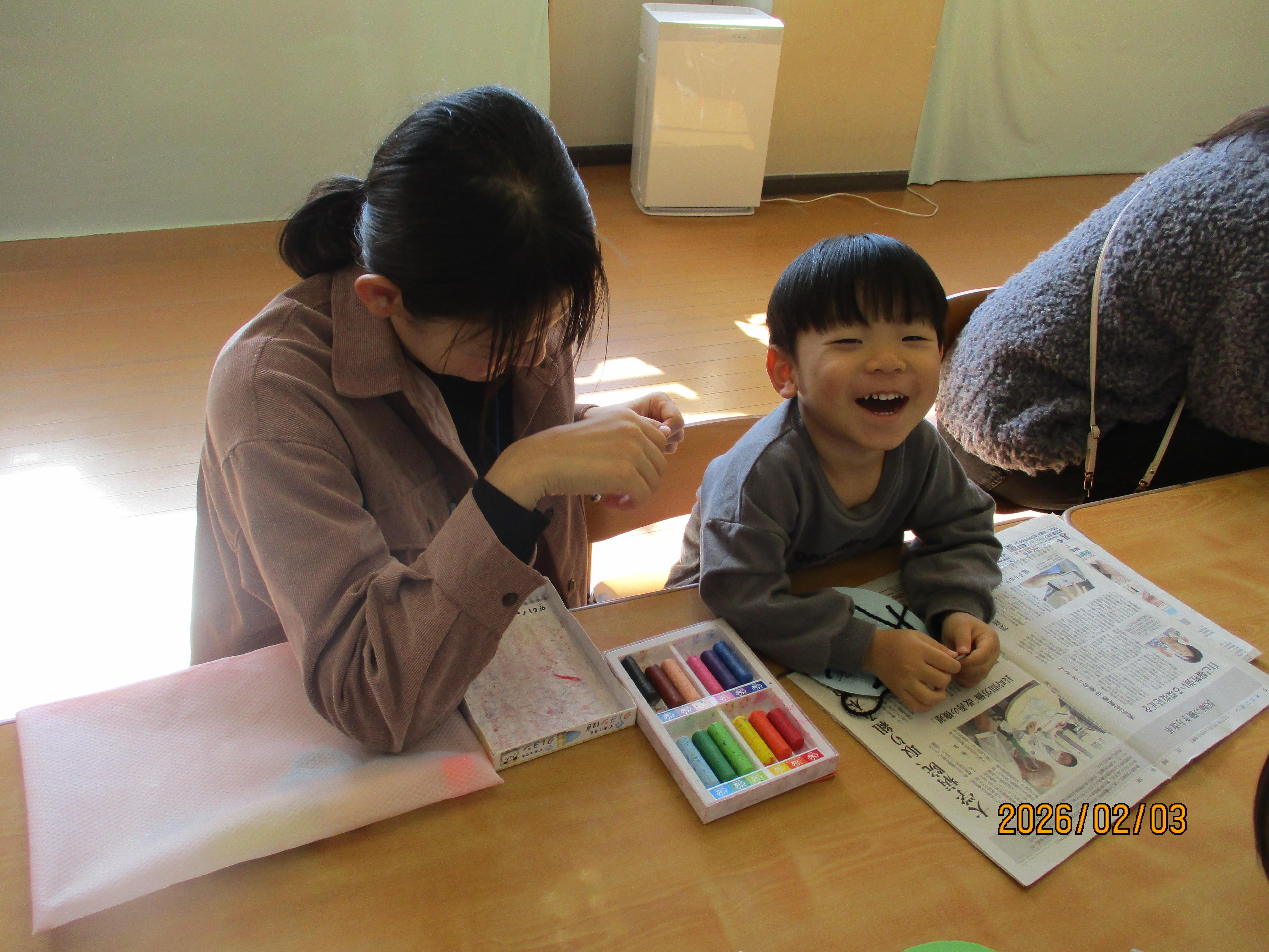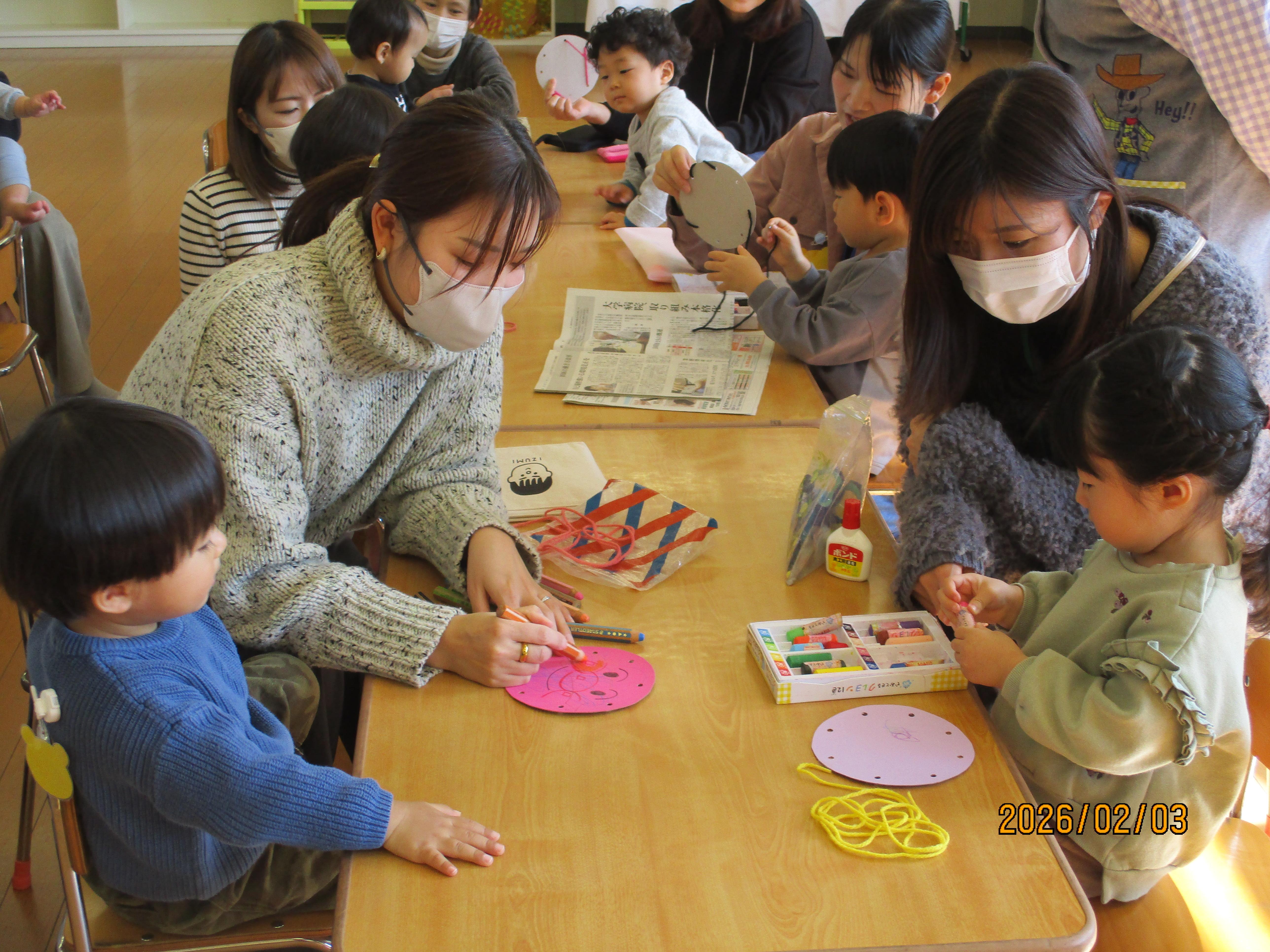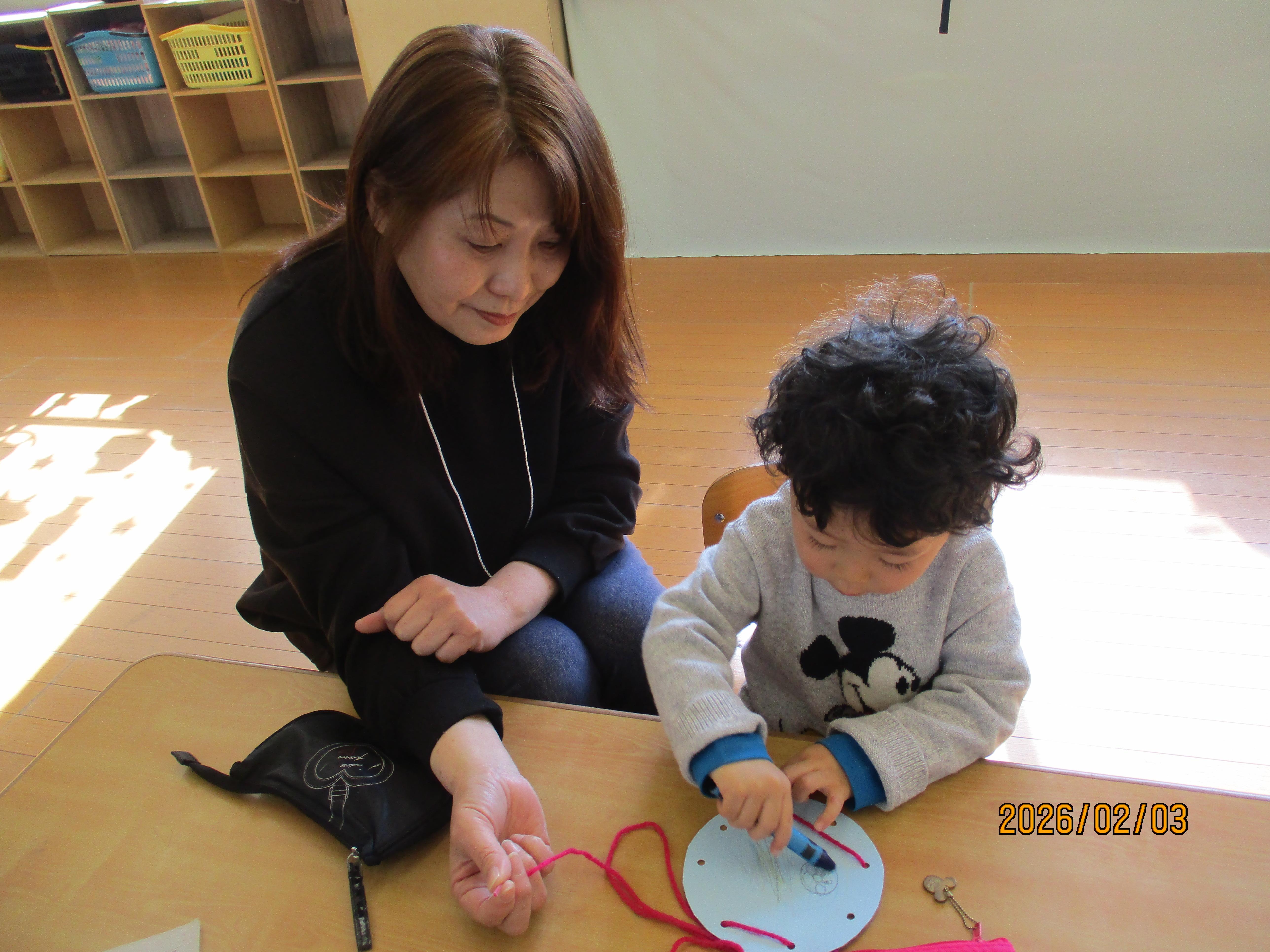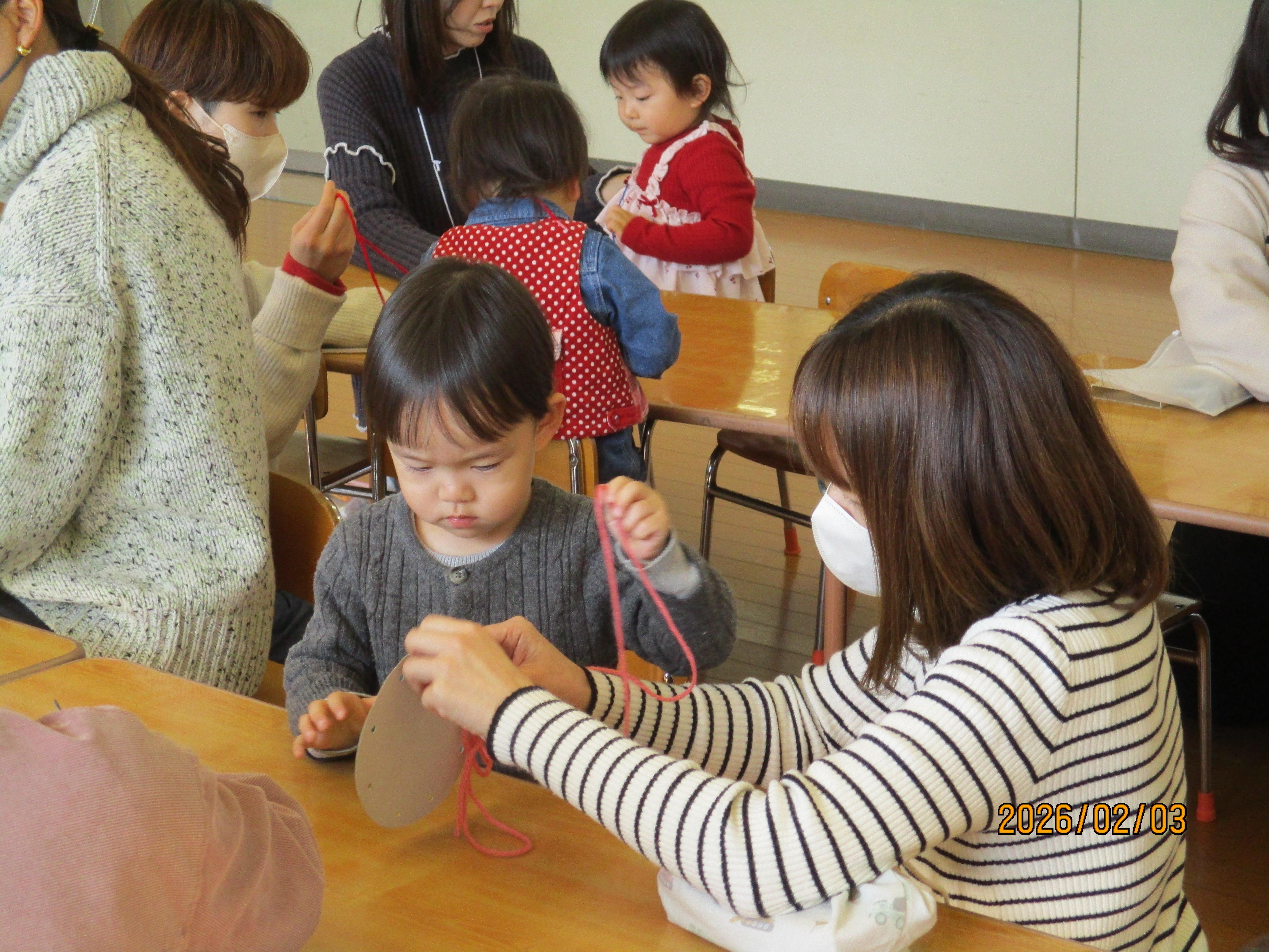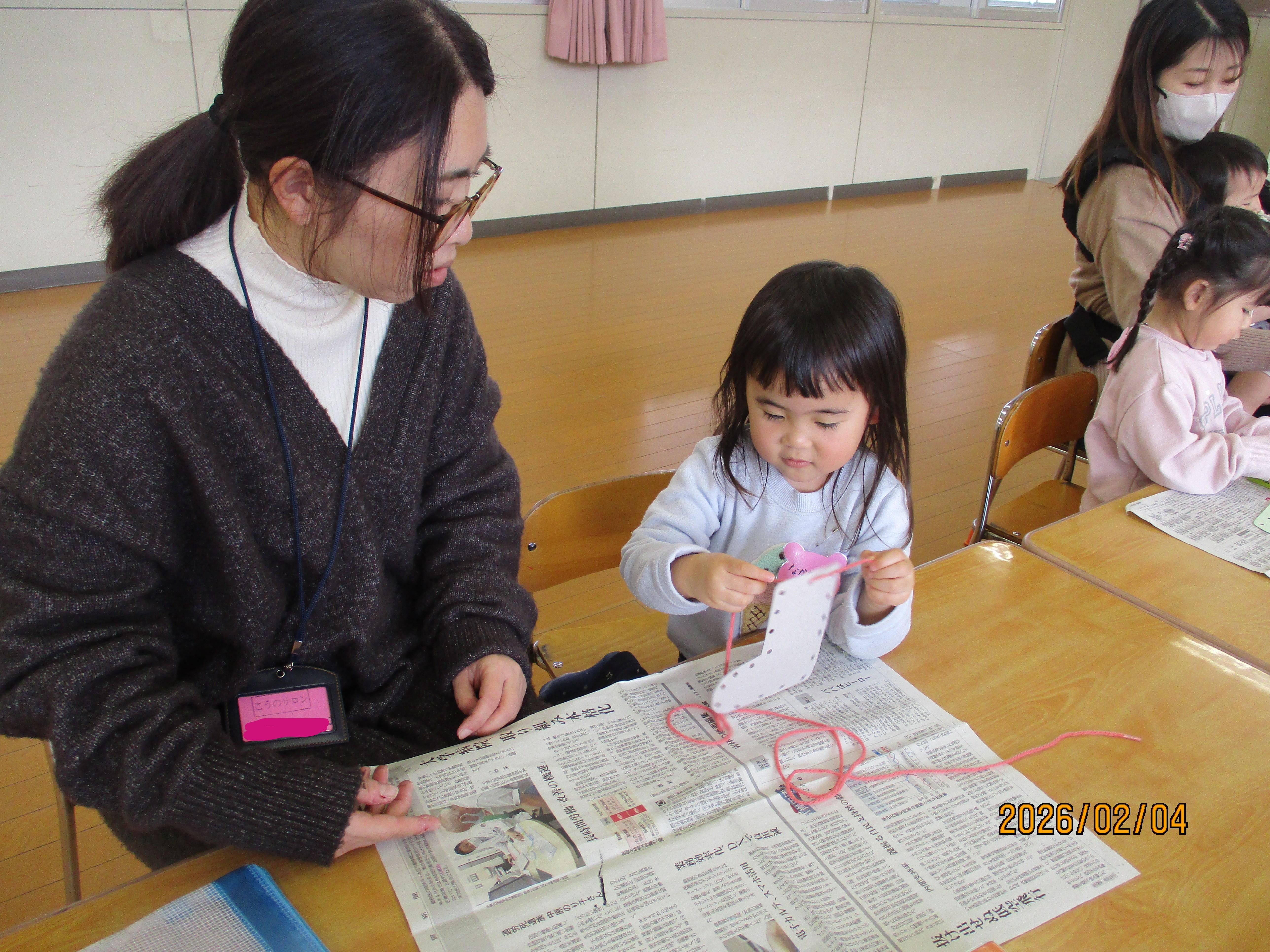 今週は、厚紙に毛糸を通して毛糸あそびを楽しみました。