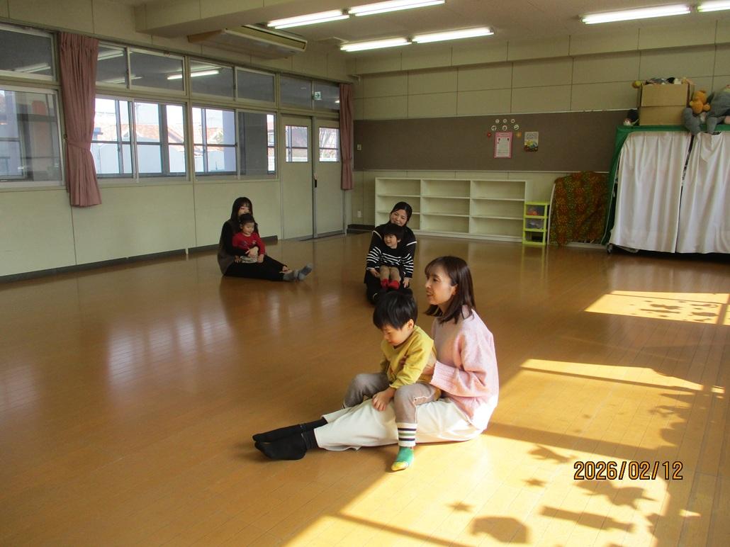 ふれあい遊びでは、お父さんやお母さんの膝に座り、歌に合わせて進むのが楽しそうでした。
