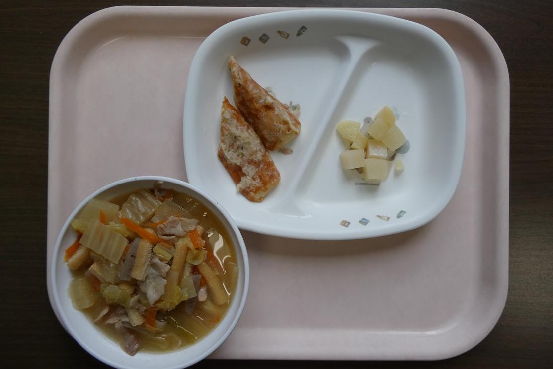 2/25(水)豚汁うどん、ちくわの中華衣揚げ、白桃缶