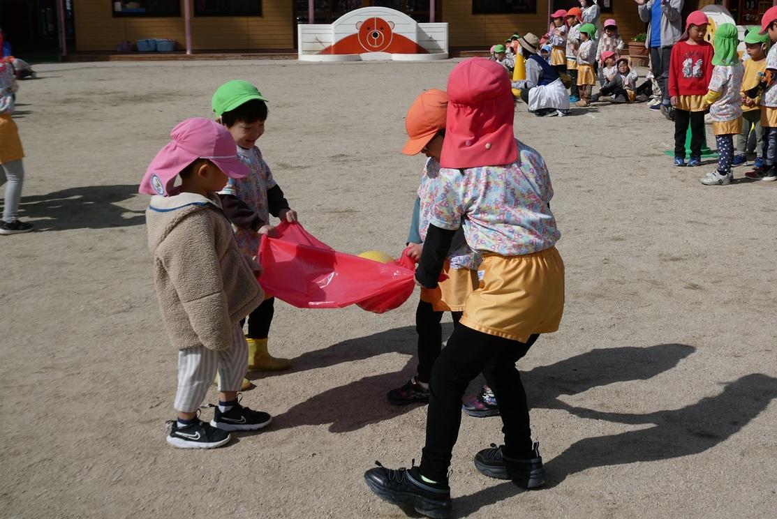年長さんと一緒に、いろんな学年の子どもたちが力を合わせました。年長さんや年中さんは年下の子どもたちを思いやりながら声をかけたり、ペースを合わせたりしていて、微笑ましかったです。