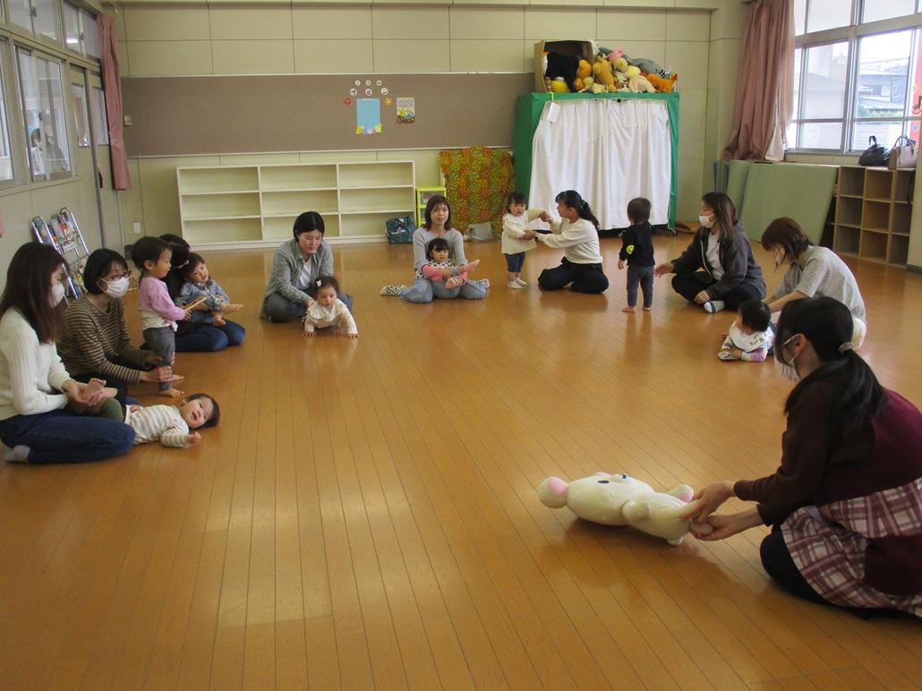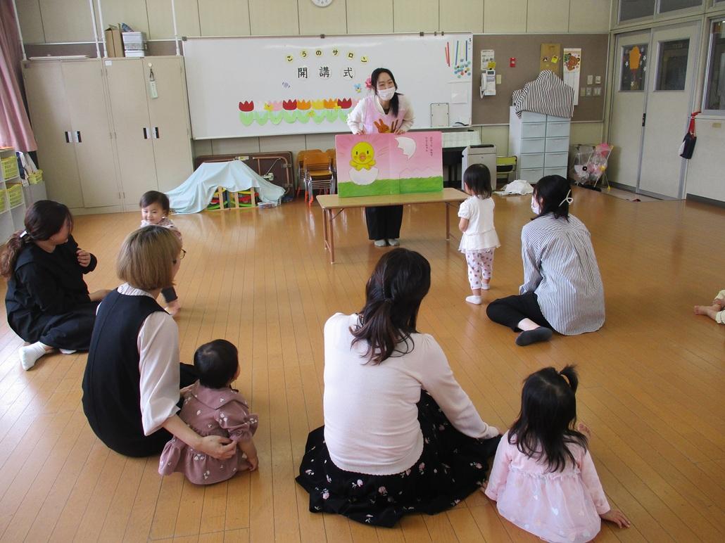 開講式では、ふれあい遊びをしたり、大型絵本などを見て楽しく過ごしました。