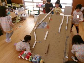 トイレットペーパーの芯や空き箱を使ってどんぐりころがし