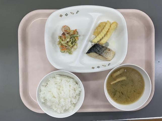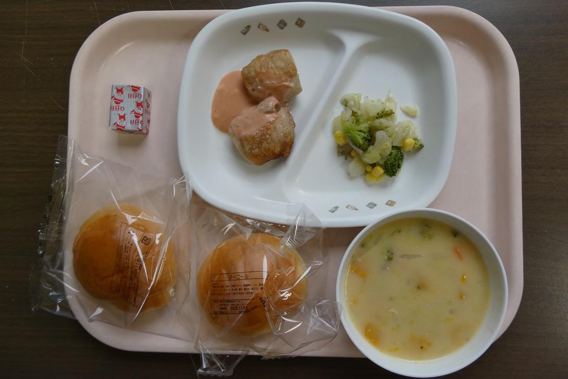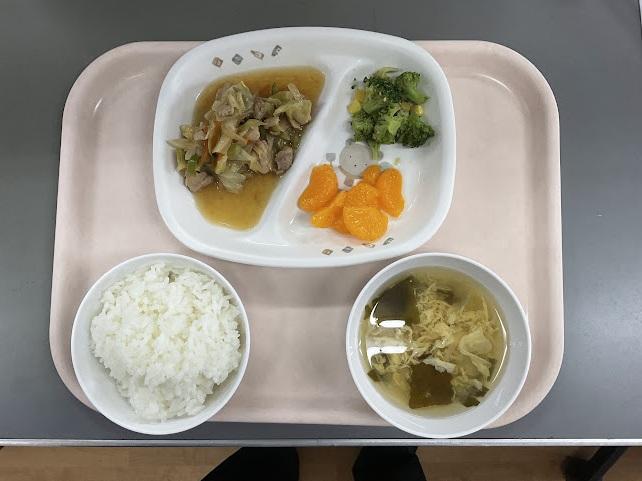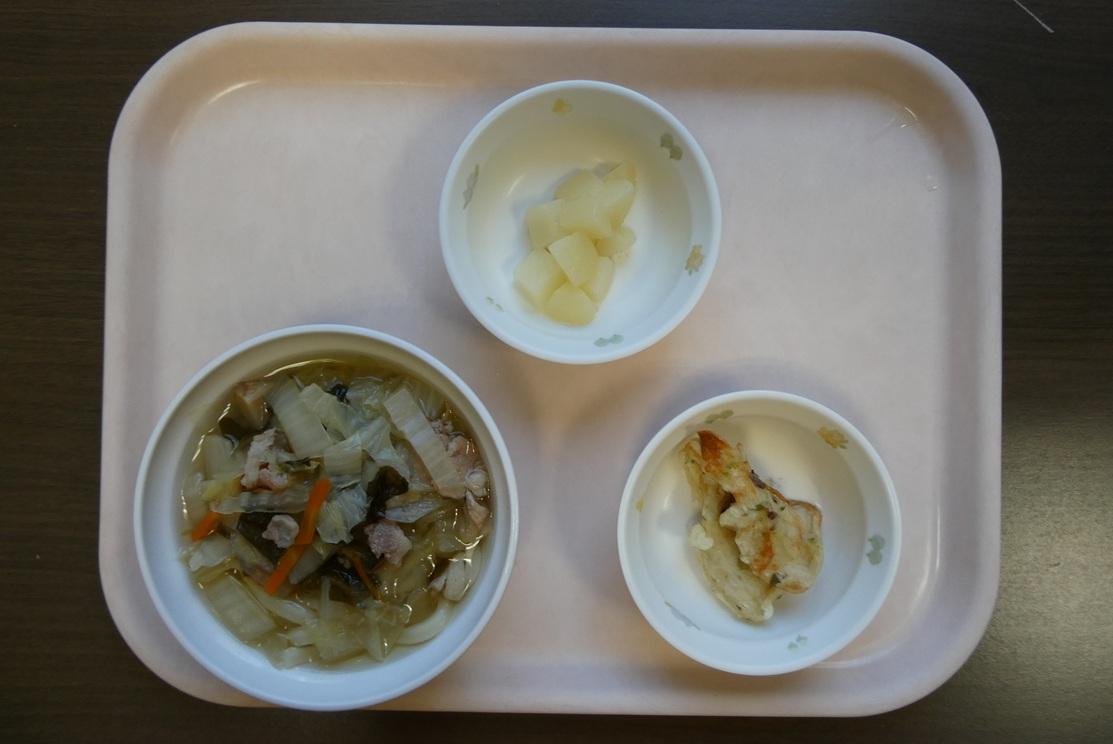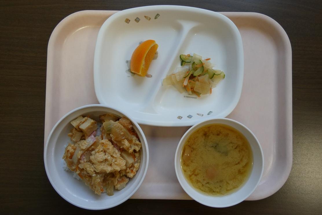ふれあい遊びの後は、わかば組さんとつぼみ組さんは園に戻って給食を食べました。